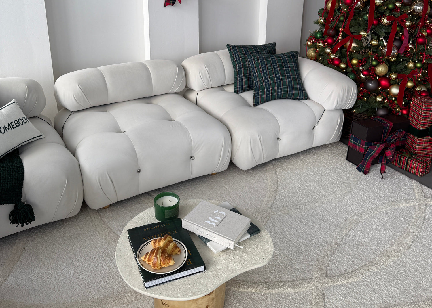 Woman in white dress looking at 365 Journal